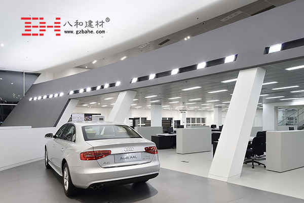 廣東八和建材承接奧迪4S店辦公室內裝修項目,八和建材工程師在設計時結合奧迪汽車內在樸實高端的內涵,完成了奧迪經銷商辦公室天花的裝修。