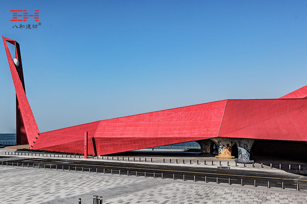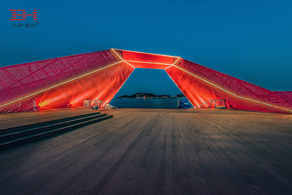 案例欣賞:紅色沖孔鋁單板裝飾青島萬達維多利亞灣棲鳳橋