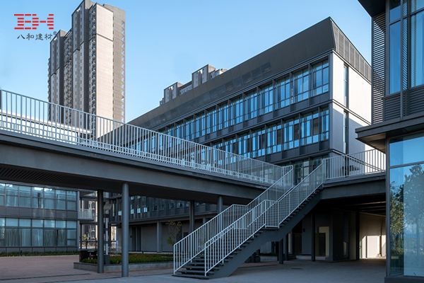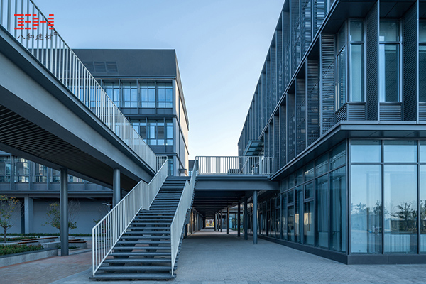 校園專注于細節和空間設計,它以高品質呈現建筑細節之美,并用高檔氟碳鋁單板展現出來。平整統一的鋁單板裝飾,搭配欄桿線條,鏤空金屬拉伸網,莊嚴規矩和開放創新之間拿捏得恰到好處,典型的校園設計風格在鋁單板的外表裝飾下又呈現出具有金屬質感的現代風。