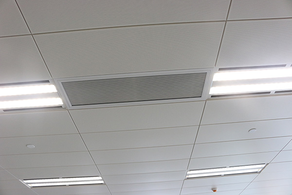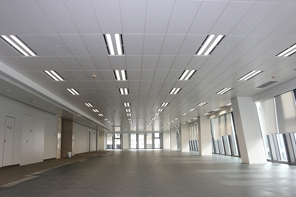 T型鋪放天花板表面平整,安裝簡易,線條鮮明有序,適合安裝在開放的空間天花上。常常用于甲級寫字樓、車站、地鐵等開放空間。