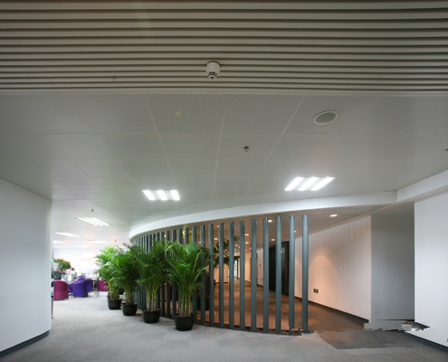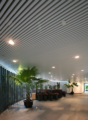 北京世紀(jì)財(cái)富中心由東方國(guó)際設(shè)計(jì)公司主持,使用八和建材白色烤漆U型鋁方通,分6期完成了所有室內(nèi)天花的裝修工程。