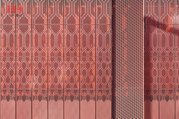 英國(guó)Bunhill 2能源中心是一個(gè)利用地鐵設(shè)施排放的廢熱,為附近住宅、休閑中心以及學(xué)校供暖的設(shè)施。其外墻使用了深色的金屬穿孔鋁單板,偏紅的配色呼應(yīng)了熱能的主題,區(qū)別于周?chē)慕ㄖ裢怙@眼。