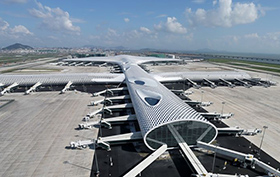 航站樓總建筑面積50萬㎡,其設計是仿生學的巧妙應用,形成由建筑到環境的自然過渡。“蝠鲼”保持著“一躍沖天”的姿態。