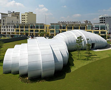 吉隆坡the Pod展館是用于開發商銷售和展示其地產項目之用。作為這一領域具有里程碑意義,開發商希望舉辦他的現場辦事處和銷售的標志性展館,在一個能反映精神和建筑風格的整體發展的展館和陳列室。展館的形態靈感源于自然界的水滴,外部猶如一節節的橢圓節連接而成。展館分為兩個部分,第一部分用作辦公,另一部分展示產品。外部由鋁合金板覆蓋,其弧形的幕墻保證了建筑的裝飾效果。