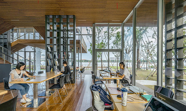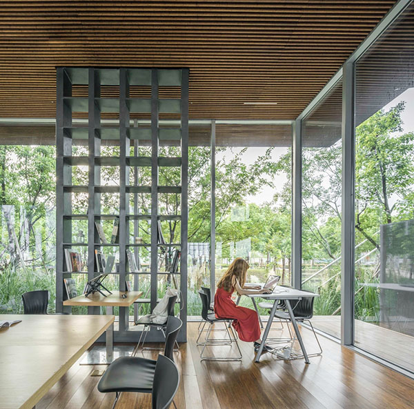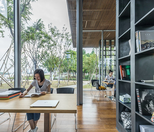 格樓書屋位于上海徐匯區濱江公園,基地四周被開闊的江景和茂密的綠樹環繞。在開放的自然中,我們希望這座通透的書屋在融入環境的同時,為人提供親切舒適的內在空間。