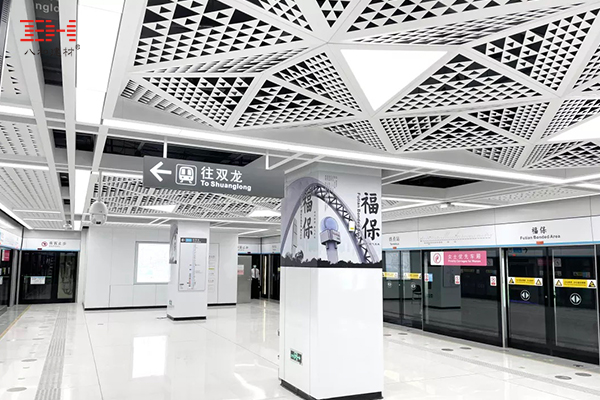 福保站整個建筑裝修設計實用、經濟、美觀、大方。車站裝修設計根據福保站站點環境、車站形式、規模、等級,分別采用不同的構思手法,結合裝飾材料質感等,使車站既有統一格調的共性又有特定的個性。