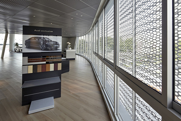 這座新加坡奧迪汽車4S展廳旗艦店有八層樓高,也是第一次做成了高樓的展廳。每一層樓都有1350平方米,是南亞最大的奧迪陳列室。這個一站式的展廳單獨提供各種各樣的服務,有展廳、車間、辦公室甚至還為來訪者提供了咖啡廳和休息室。多大35款的奧迪最新車型都陳列在2樓和4樓的陳列室里。大樓的外表覆滿了蜂窩菱形孔長城鋁單板產(chǎn)品,這種長城鋁單板也是奧迪汽車店專用材料,低層使用的全高的玻璃窗讓人覺得大樓像漂浮在地面上一樣。