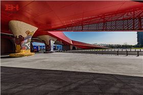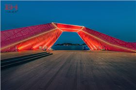 青島萬達維多利亞灣棲鳳橋形如鳳凰,橋身紅色沖孔鋁單板表現(xiàn)出了“浴火鳳凰”熱血、火烈的力量感。鋁板經(jīng)過數(shù)控機床沖孔,刻畫出均勻有規(guī)律的圖案,使得橋身更加生動活潑。