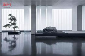 建筑設計采用極簡主義手法,以大塊面黑白色調,渲染無隔斷的流動空間氛圍。細節之處運用鏡面反射的方式,將鏡面與山石、雕塑、樹景有機結合。透過光影的力量,呈現材質肌理的變化,波光粼粼的漣漪,讓剛柔之美在場地中交織對話。
