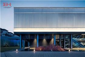 領秀山藝術館位于中山市五桂山區,在建筑形式及材料方面,設計團隊追求簡潔精致,勾勒純粹的公共空間意向,營建禪意化的場所精神。立面選用U型玻璃、鋁合金格柵和花崗巖石材等材質創造輕盈通透的氛圍,削弱場地入口的長度厚重感。