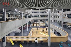 Zalando柏林辦公總部,有著總量為43000平方米的辦公空間。辦公大樓內幾處鋁方通天花裝飾設計得十分巧妙,體現了辦公大樓開放的態度和透明的建筑狀態。
