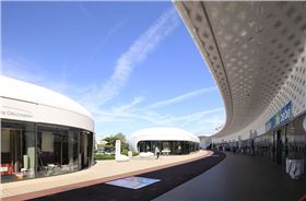 L’Atoll Angers購物中心四端由4個大型走廊隔開,就像四個入口。建筑覆蓋著大量鋁單板材料,帶有背光燈。建筑外殼離主結構8到12米遠,保護著后面的商店,讓這些商店進行的運輸遠離Atoll中心行走的客人們的視線,為安全服務提供了一個自由通道。覆蓋殼從里向外,延著走廊向屋頂延伸開來,為走廊形成了部分天蓬。