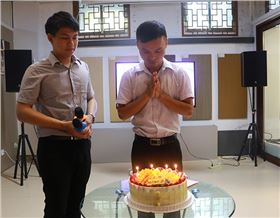 今天是八和建材鋁單板廠家銷售部紀主管的生日,因為知道他今天要出差,所以我們后勤部的同事昨天就已經訂好了生日蛋糕,準備在早會時間給他一個大大的驚喜。當早會進行到尾聲,燈光全部熄滅,端出精美的生日蛋糕,隆重請出我們今天的壽星??梢钥吹剿哪樕蠞M滿都是感動,是的,八和之家就是這樣一個大家庭,隨時給你家的感覺和溫暖,讓獨自在異鄉拼搏的我們隨時都有被愛的感覺,不再感覺孤單寂寞。真誠的語言祝福和內心滿滿的感恩,我們的紀主管今天被大家誠摯的語言所感動著,幸福著。他伴隨八和建材鋁單板廠家走過了5年的崢嶸歲月,相信我們的八和建材也會陪伴他走過以后更長的歲月。