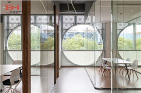 由于沖孔鋁單板具有一定的透光性,可以為建筑帶來通透的感覺,于是設計師嘗試在建筑沿街外立面用定制的沖孔鋁單板以營造編程代碼結合繁星的璀璨效果;在建筑內部的主體空間,設計師也定制了白色和藍色的沖孔鋁單板,希望建筑裝飾風格與“編程”的主題相呼應。