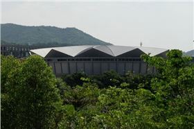 深圳鹽田體育館屋頂,同樣使用了造型氟碳鋁單板,總建筑面積達到50000㎡。