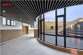 其中室內鋁方通天花主要運用于半開放性的場所如:中庭、走廊、通道等。導向性的鋁方通線條與其他建筑元素巧妙搭配,創造出空間幾何上的建筑美,成就活力開放的學校環境。