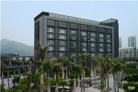 珠海明華研發中心是華發集團投資建設的自用辦公大樓,在不改變建筑結構的基礎上,設計師沿用華明的建筑風格,將固定遮陽板和2.0mm厚穿孔鋁單板組合使用,銀白與深灰的顏色搭配,形成豐富而生動的外立面效果。